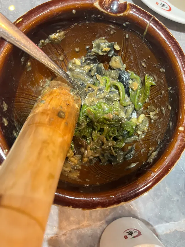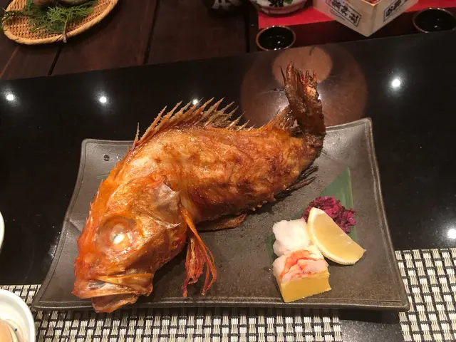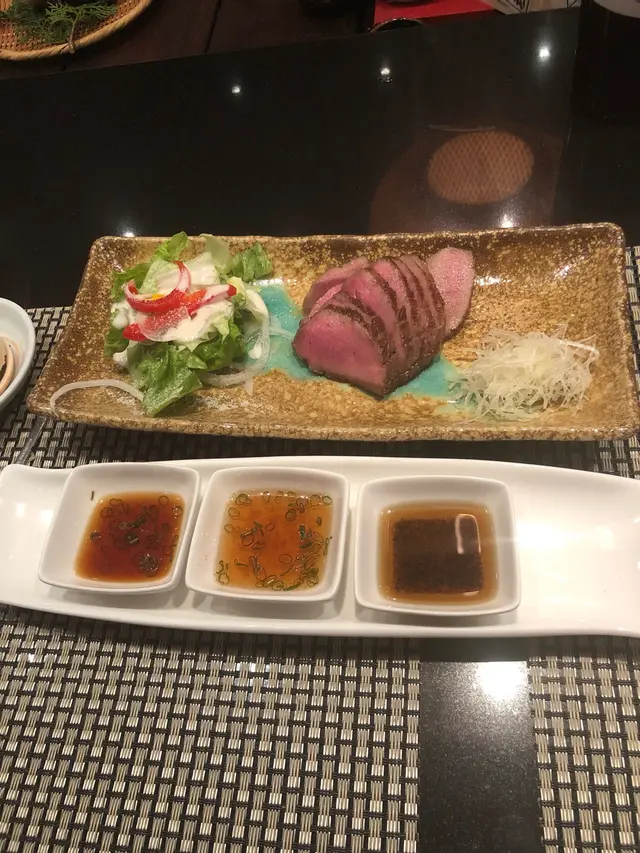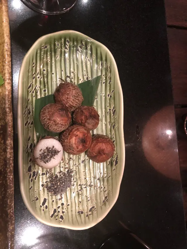 He insisted on bringing me here for a try :-) when I made the booking, I was not aware that I got to specify the food category. Therefore, when we arrived, the robatayaki table was full. We decided to start with some sashimi/appetisers while waiting for the seats. We had sea urchin, spot prawn and shrimp - all very fresh. The sea urchin was particularly sweet and we were very happy with the quality. It was not long before we got the seats. Then the show started - it was interacting with customers on making sticky rice cake, lifting up plates, clapping hands etc. Quite alive and quite an experience. The meal started with crab legs, a taste of freshness and the sea. Then followed by all kinds of veggies. The kinki fish, known as the sea sapphire, was well cooked with crunchy skin and extremely tender meat. We enjoyed every moment of eating the fish. We were too full and left the beef tongue almost untouched...had one piece - juicy and tender as expected. The chefs are nice, funny and strong (or you can say quite handsome). It was an interesting and pleasant experience. Plus my Fairchild wine got better and better as the meal went along and was definitely a nice add. Will I be back? Um...I will need to double think...maybe for the fish…查看更多