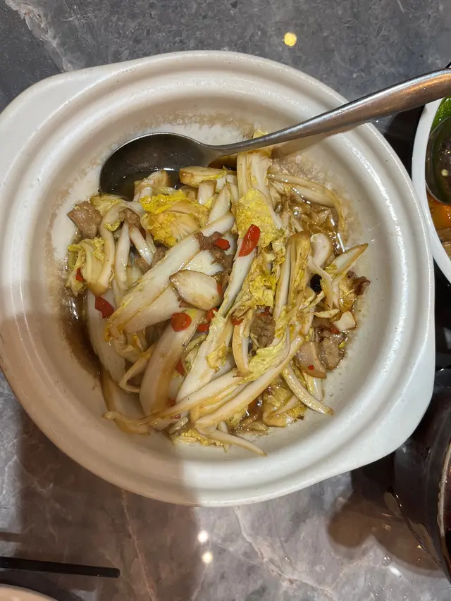 片皮鴨絕對是香港目前最好的!烤鴨風味、口感不輸北京大董。鴉皮入口即溶,鴨肉全熟但仍然很嫩。最好的仍然是皮肉一體,兩種不同口感搭配,一流!配料正宗。甜麵醬濃厚,甜度、鹹度適中。卷鴨餅更是很薄、很有嚼勁,麵點師水準很高。再到鴨湯,煲的也很到位,沒有鴨子本身的腥味。清清爽爽,吃完烤鴨印一碗,個胃都好舒服。鴨鬆配生菜就一般般,可能是鴨子不是很適合小炒。其他菜品,各式各樣、全國各地都有,相比較只能是不過不失,沒有很多特色。可能是本地廚師做,粵菜水平相對高一點,川菜就實在麻麻。一定會為烤鴨再來!…查看更多