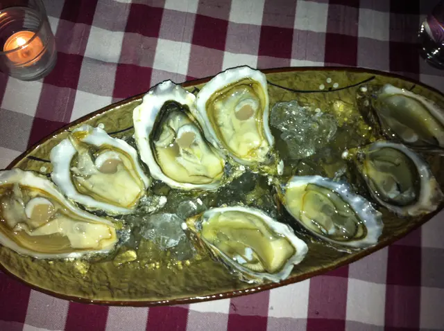 至於食物方面: 蠔 - 雖然我唔係食家, 但都知宜家唔係食蠔嘅季節, 不過餐廳老闆極力推介來自愛爾蘭同法國嘅蠔 .... 講真, 真係冇介紹錯, 前者肥美, 後者比較瘦, 但鹹水味好重, 好鮮 ... 正 !!