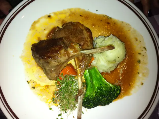 扒澳洲羊骨排伴香濃乾葱紅酒汁 - 羊架好好味, 一點"蘇'味都冇, 再伴紅酒汁, 帶點點甜, 好特別 !!