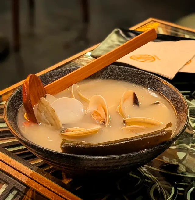 今晚朋友帶咗我食呢間餐廳嘅fusion日式料理,確實有驚喜,食物質素高之餘煮法又有創意。前菜五天昆布熟成北海道帶子係全晚我最鍾意嘅菜式之一,有清香嘅柚子胡椒牛油汁,三文魚子爆汁嘅口感同炭燒白昆布嘅脆口,配上帶子溏心嘅質地恰到好處。底層嘅海葡萄同日本玄米增加層次感,一啖食落去多重感官交織,幾有心思。三文魚他他用細細嘅雪糕筒呈現,上面加咗魚子醬,份外精緻。香煎松阪豬,肉質軟腍到好似豬頸肉咁,而且調味平衡得好有心思,先用味噌醬搽勻豬肉令到佢有濃郁嘅鹹香味,配上魚子醬同青蘋果purée,形成先甜後咸嘅層次,點埋黑松露醬食更加香。主菜慢煮鴨髀鴛鴦腸焗飯,非常新穎嘅嘗試,餐廳用咗清新嘅青檸油,減少油膩感。焗飯仲加入咗藍莓乾,佢嘅酸甜同潤腸辣肉腸嘅鹹香成強烈對比,整體鹹味同酸甜嘅碰撞配合得好好,清爽嘅雜菌亦加強咗咬口。第二主菜14天雞油熟成牛舌芯,用雞油包住牛舌再做熟成,呢個處理手法幾特別,令牛舌保持嫩滑,而且慢煮令到牛舌唔會太韌,入口即溶。最後加上紅酒汁,減輕油膩感,難怪係餐廳嘅signature菜式。21天乾式熟成澳洲M7和牛扒,經過21日熟成嘅牛扒,肉質竟然可以保持鮮嫩,同時保留牛肉濃郁嘅風味,加埋紅酒汁,簡單而出色。甜品 Tiramisu,由朱古力、杏仁脆片到 Tiramisu 都係餐廳自家製,非常用心。朱古力用咗真空處理,比平日食到嘅更加脆口,而 Tiramisu 則好輕身,作為飯後甜品又滿足到第二個胃. 又唔會覺得太飽。…查看更多