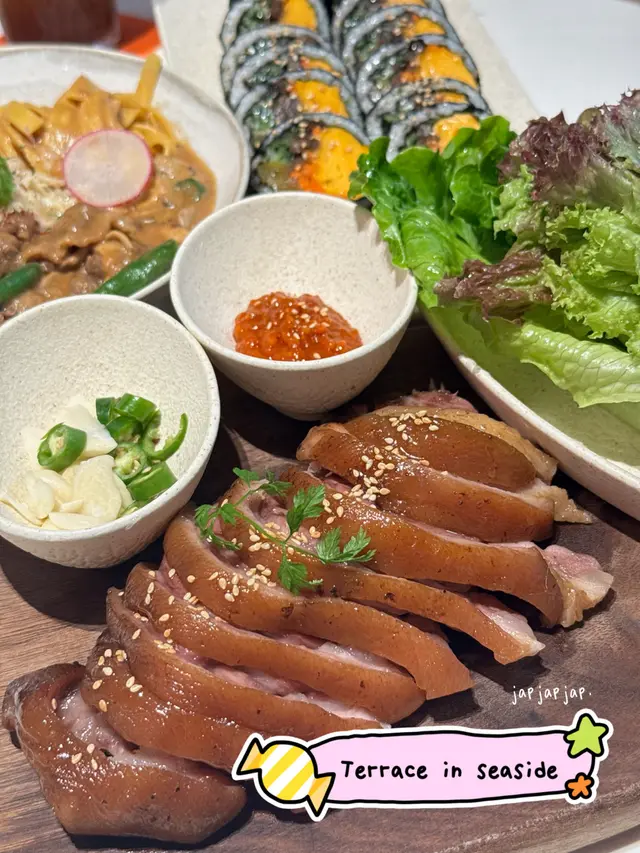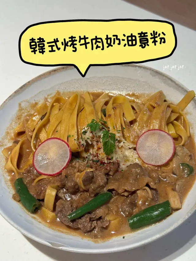 👈🏻Terrace in seaside #japjapjap_旺角#japjapjap_韓國菜韓式烤牛肉奶油闊條麵 $105牛肉片烤到好香又嫩配上濃郁的奶油醬汁好有風味奶油闊條麵滑順口感闊條麵煙韌有咬勁😘每一啖都好滿足韓式豬手(半份) $122豬手滷得入味豬皮Q彈有膠質🥰肉質軟嫩不柴配埋生菜同埋蒜片可以解膩開心果蜜糖窩夫 $138窩夫外脆內軟蛋香濃郁🫶🏻面頭有滿滿開心果碎同開心果醬仲有cream添每一啖都咬到開心果嘅香脆雞蛋多過飯的蛋飯卷 $86名副其實蛋層厚實多過飯咬下去滿滿蛋香🤪內餡有脆蘿蔔絲同青瓜增添清新口感飯量少但精緻手指餅咖啡(凍) $58手指餅浸喺咖啡入面吸滿咖啡酒香口感濕潤💕層次豐富香印提子奶蓋綠茶 $62綠茶基底清新不澀頂層奶蓋綿密滑順夾雜香甜嘅香印提子粒整體甜度適中❤️依家消費滿$500 就可以獲得一條鎖匙去抽獎 成功打開寶箱就可以獲得$3000嘅旅遊禮券 🥳Overall食評:(最高5粒🌟)📌好味程度:🌟🌟🌟🌟📌回頭度:🌟🌟🌟🌟📌環境:🌟🌟🌟🌟📌服務:🌟🌟🌟🌟…查看更多
