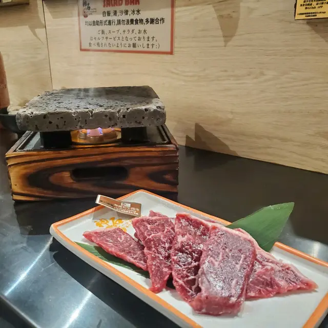 聽朋友講燒肉店已開,難得放假走來試下。此店在太和商場舊屈臣氏的位置店員安排坐位。兩個烤爐,中間有調味料