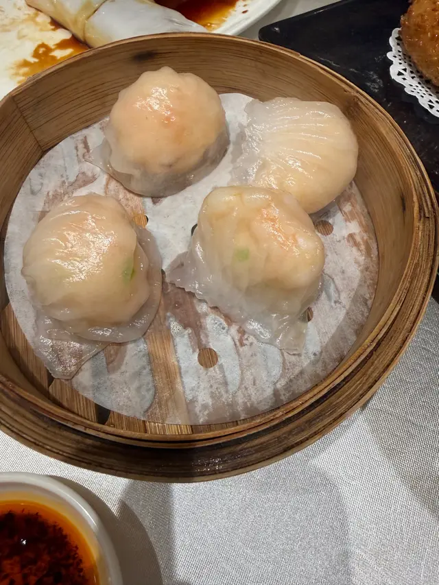 又係lunch 既時候,今次3個人去神燈飲茶,未食過佢既點心,勁期待!同埋lunch有7折勁抵!同埋佢個辣椒油要點,夠辣又惹味!神燈蝦餃皇皮薄餡靚,蝦肉爽口,蝦肉又多,係飲茶穩陣之選。潮州粉果皮煙韌,餡料足,有花生同菜脯,口感豐富,好食。蟹籽蝦仁燒賣頂層蟹籽卜卜脆,豬肉餡實在,蝦仁彈牙,好夠味。雪山叉燒包外皮酥化,裡面叉燒餡熱辣辣,甜鹹適中,食得好滿足。蘿蔔絲酥餅外皮真係好酥,蘿蔔絲清甜唔油膩,幾香口。呢樣初時以為係蘿蔔千絲酥一嚿嚿咁嘅樣,原來佢係咁大舊,如果餡料再多啲就更加好食!蜜汁叉燒腸粉夠滑,叉燒份量唔少,甜豉油吊味,係我每次必點。奶黃流沙包外賣比同事食,佢話味道都好唔錯,流心又熱辣辣!總體來講,全部點心都係即叫即蒸,水準穩定,係間會想返轉頭再飲過茶嘅酒樓。…查看更多