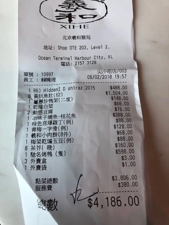 環境一流,海運大廈新地標,無敵維港景。 羲和雅苑 2018-02-26-亁隆白菜很有新意,雖非衿貴食材,確是前菜一絕 👍👍👍-黃扒魚肚 OK 不過每位$188,貴咗D-梅菜乾煸玉豆 - 還好-動感豆腐 一般般-宮爆雞丁 不錯-片皮鴨 枱前切-北京烤鴨 中規中矩,綽頭菜色,首先沾醬食(無薄餅),然後再配薄餅蔥醬傳統食。-青梅一字骨 食得又睇得👍👍冶味干燒魚 好吃但無乜特別 👍…查看更多+ 6以上食记乃用户个人意见 , 并不代表OpenRice之观点。赞好分享環境一流,海運大廈新地標,無敵維港景。 羲和雅苑 https://s.openrice.com/QrLT0CPaj00检举 张贴 评分4味道4环境4服务4卫生4抵食用餐途径堂食