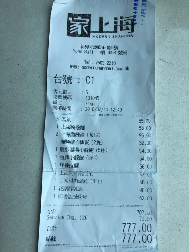 五個人、3條7 家上海 (形點 I) 2018-02-26炸醬拉麵- 普通金牌小籠包 - 果然係招牌菜👍🏼花雕醉乳鴿- 洒味略嫌過濃蔴香雞絲粉皮 - 粉皮好味酸辣湯- 本人愛辣、所以覺得不夠辣上海肉絲兩面王- 正👍🏼脆煎灌湯小籠包- 普通整體都ok、價錢尚算可以接受…查看更多+ 4以上食记乃用户个人意见 , 并不代表OpenRice之观点。赞好分享五個人、3條7 家上海 (形點 I) https://s.openrice.com/QrLT0P9Oj00检举 张贴 评分4味道4环境4服务4卫生4抵食用餐途径堂食