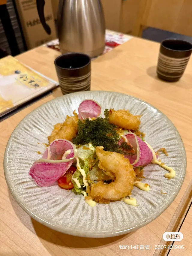 金子半之助係我大概每隔兩三個月就會幫襯一次嘅餐廳😎 首先佢價錢合理,餐廳裝修又坐得舒服,唔會話好迫👍🏻天婦羅雖然係炸物,但係佢哋真係做得到炸而不油膩,炸粉夠薄,入口又脆😋喺香港想食天婦羅,第一時間都係諗起金子半自助😬半子助沙律天氣咁熱,梗要食返個沙律清涼下🥶開胃下先 🥗沙律菜爽口新鮮,醬汁清新開胃海老天押壽司份量比想像中多,覺得有驚喜嘅係,喺壽司飯之中,佢夾雜咗一啲酸薑,好開胃醒神 💚而且佢啲蝦排得好整齊,睇得出廚師係好有心機去整呢個壽司🍣特上牡蠣天丼擺盤好吸引,上完主菜之後會有店員主動嚟為我哋提供配料 (例如係葱花 海藻) 。牡蠣炸完之後都仲係keep到肥美多汁 ,入面仲有塊炸紫菜都好出色😍 個set入面有飯又有蕎麥麵 絕對夠晒飽👍🏻…查看更多
