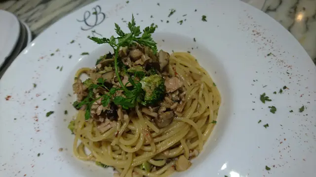 外國 來的朋友想去女人街行一轉 ,行到通菜街,肚餓又攰,見到Coffee Break,望入去,裝修有別附近的餐廳,木桌、椅、牆也是用木條,給人溫暖的感覺, 舒服,再睇餐牌,Set Dinner由$82至228元價錢吸引!Set Dinner 加$8換餐湯,香港有不少西餐廳都以忌廉磨菇湯為例湯,今晚係黑松露蘑菇 忌廉湯, 湯足料好喝的,再加上黑松露的香味,濃郁菇菌味倍增。 乾炒橄油銀魚柳吞拿魚意粉, 意粉有口感,雖然係炒,但一點也不油膩,Anchovy魚香味增加美味。香烤美國豬仔骨,豬仔骨燒到金黃香,juicy, 份量足夠,熱辣辣,用了barbecue sauce, 帶少少甜味, 用手拿著豬仔骨一條條食更滋味。配奧地利西柚味生啤,清爽帶著西柚味,甜甜酸酸,配豬仔骨最合適不過。…查看更多