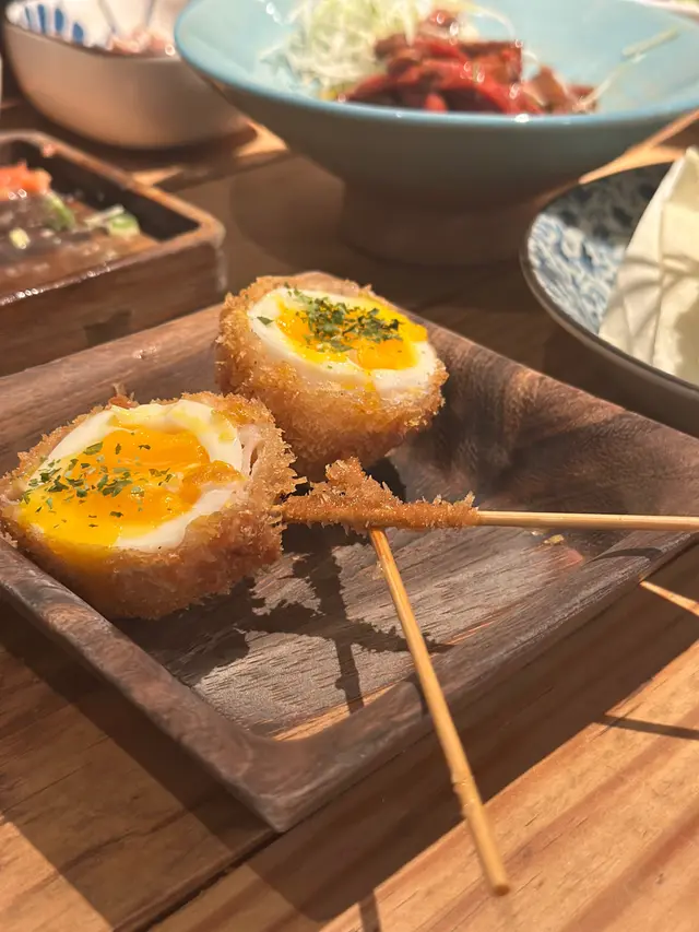 預早在inline 訂位,預訂網站都有Menu 可參考前菜小食每人可揀一款 每款$20點咗一個牛舌 一個芽菜配紫菜鮟康魚肝配土佐酸醬$78連埋個醬一齊食好清爽 酸酸地好開胃麒麟啤酒$58, 四季梅焙茶梅酒$68梅酒同焙茶幾夾 有茶味又有酒嘅淳香明太子芝士玉子燒$98切開可拉絲得好長😂好食 蛋厚 中和到明太子嘅少少辣他他和牛肉$98撈埋蛋食無咁濃味,不過切絲嘅牛肉有少部分比較韌 日本雞蛋豬肉卷$42吉列蛋嘅炸串做得好 蛋有少少流心A4和牛$48, 冬菇$18, 青椒仔$18, 蘆筍豬肉卷$26炸得好好 炸出嚟表面唔會過厚,食物嘅原味道亦好出無因為炸完而流失炸鮮奶蟹肉$68um…呢個麻麻地 我淨係食到炸粉同奶油 食唔到有蟹味同蟹肉秋刀魚刺身$198我今晚最期待嘅秋刀魚 正值當造期,好好味 雖然未到好肥美 但都好重魚味加上有魚嘅魚油好香,見到師傅將全條秋刀魚拆骨 夠細心整體嚟講 食物好食 飲品有酒精同無酒精都多選擇 環境乾淨企理 餐廳員工服務亦好好 絕對值得再光顧,餐廳由6點開到凌晨4點(星期一至五)…查看更多