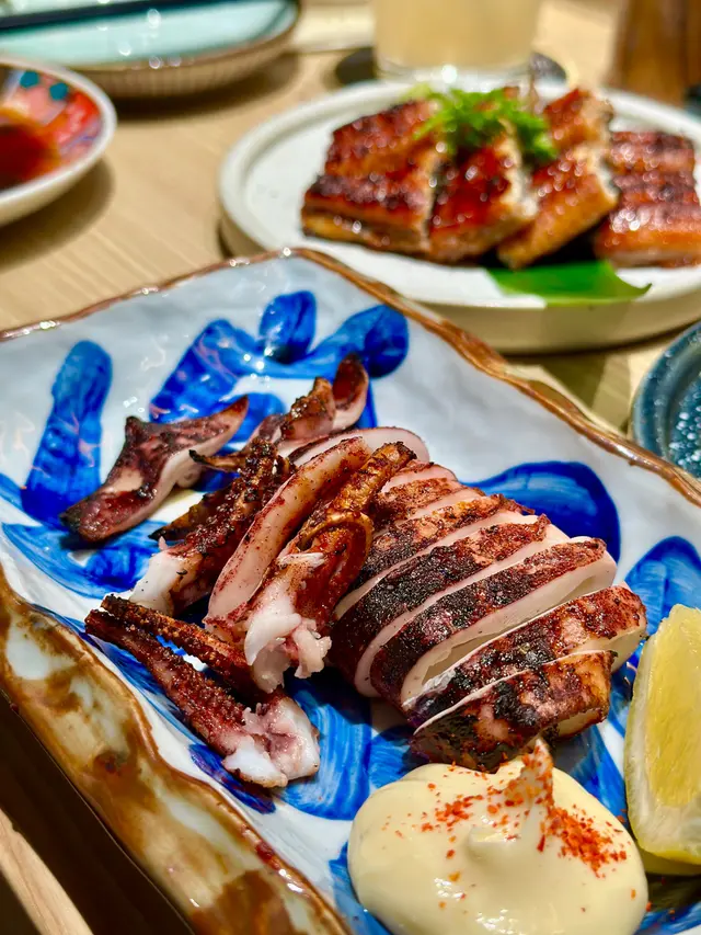 朋友介紹一間位於中環嘅居酒屋,由日籍廚師主理,餐廳大部份食客更是日本人,邊用餐邊聽到日語,加上餐廳亮麗裝潢,彷如置身東京銀座居酒屋一樣,好有親切感🍢手打雞肉丸串 雞肉丸鮮嫩軟腍,加埋月見醬汁鹹甜適中,吃起來更香滑惹味👅牛舌 牛舌烤得微焦,口感Q彈爽脆,內裡仍保留到肉汁🐟燒鰻魚 外層燒至微微焦香,油脂被炭火逼出,香氣四溢,內裡肉質鮮嫩,豐腴肥美🍗原隻燒雞腿 師傅已幫忙先將雞腿拆肉碎上,由於雞腿原隻燒烤,仍能夠鎖住豐富嘅肉汁,吃起來勁鮮嫩,忍唔住一口接一口,必點🦀蟹膏多士 蟹膏充滿鮮味鹹香味濃,搭配多士脆口又惹味🦑原條燒魷魚魷魚口感鮮嫩彈牙,加點沙律醬更美味🥓蘆筍豬腩肉卷外層豬腩油脂豐富帶點微焦香味,入面包住蘆筍鮮嫩爽脆,更可解膩,係絕佳嘅配搭🍚火炙三文魚腩魚籽丼 火炙過嘅三文魚腩充滿魚油香味,粒粒三文魚籽更帶來鹹鮮香味,每口飯都好有幸福感整體菜式都好滿意,係中環地段嚟講性價比好高,坐在吧枱用餐特別有氣氛,服務很好,必定回訪…Read More