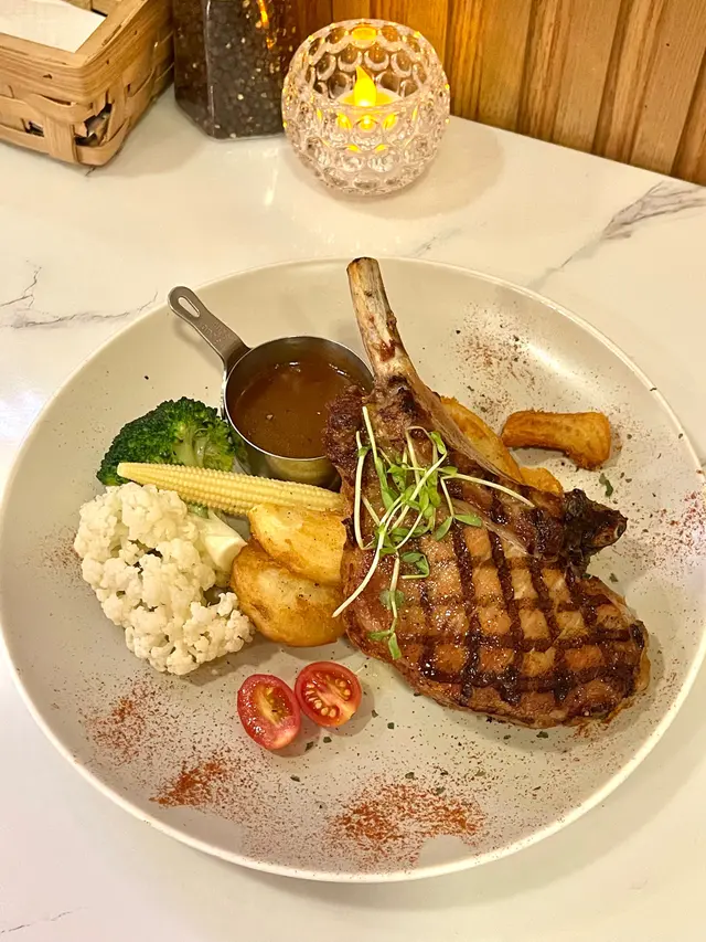 意式輕鬆是一間位於尖沙咀的西式咖啡店,餐廳環境舒適,燈光柔和。晚市套餐配沙律菜 或 是日餐湯,餐包包一杯 美式/伯爵茶/桂花烏龍茶/玫瑰烏龍茶/蜂蜜柚子,其他飲品半價,凍飲+$5美國殼飼豬扒伴薯菜配牛肝菌汁:豬扒厚身軟嫩,肉質多汁且肉味濃郁。牛肝菌汁以牛肝菌蘑菇熬煮而成,香氣濃郁,帶有濃厚的香菇和鮮甜味,搭配薯菜作為配菜,整體口感和風味層次豐富且滋味十足。香烤原條石班海魚:餐廳以烤整條石斑魚出名,魚皮經過香烤後非常脆,內裡魚肉滑嫩多汁,帶有鮮香鹹味,配搭的薯菜調和口感,令整體菜餚色香味俱全。是日餐湯是粟米湯,味道清甜,口感幼滑。加上牛油的餐包鬆軟且帶有濃郁牛油香氣。包一杯 美式/伯爵茶/桂花烏龍茶/玫瑰烏龍荼/蜂蜜柚子蜂蜜柚子(熱):柚子味道清香,融合蜂蜜的溫潤甜味,酸甜平衡且帶有暖意。追加是日精選甜品+$15自家製蛋糕味道甜酸適中,結合了新鮮士多啤梨的清新果香與濃郁朱古力的醇厚滋味。…查看更多