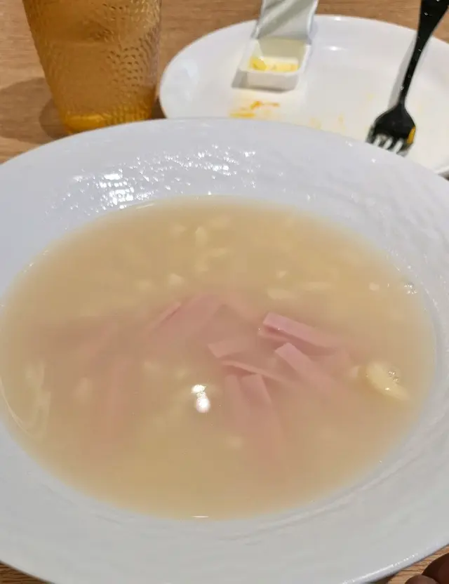 今早啱啱行過,見唔駛等位就入去嘆個早餐,早餐餐牌選擇唔算多,都係D通粉,沙爹牛麵D大路野啦!我就揀左火腿通粉,炒蛋加腸仔!等左5分鐘,凍奶茶到,奶味濃,茶味淡。1O分鐘後,炒蛋,腸仔,麵包到!蛋超薄,冇味!好快食完!但個通粉足足等左2O分鐘先嚟,一上枱,見個樣都知道出事了,果然,通粉個湯係暖嘅!唔熱!湯冇味,通粉硬既!衹好拿拿臨食完埋單走人!其實樓面有好多人,客又唔算好多,但睇得出大部分樓面都唔係熟手!見隔離枱個件蛋治都好好笑,2塊麵包磚頭咁厚,但雞蛋就紙咁薄!