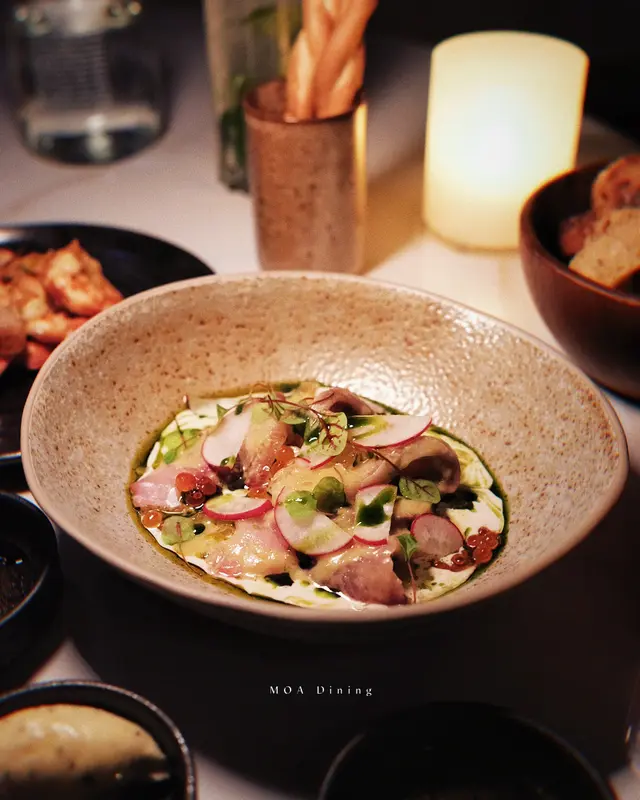 -和緣 · 深秋🍣2月果陣黎食過割烹料理晚餐 當時睇夜景已經覺得好壯觀除左因為味道而念念不忘之外 亦都好想日頭再黎睇多次正好今次黎食到深秋菜單 魚生都特別肥美 大滿足🤩蒸物 🥚黑松露帶子茶碗蒸蒸蛋勁滑 湯汁充滿松露同帶子甜味香氣細膩 食落都好香濃又鮮美 很可以!當日刺身 🐟火炙鰆魚 — 火炙令原本豐富既油脂爆發 魚香更突出🐟燒金目鯛 — 肉質細緻柔滑 配海苔醬同鹽 甘甜鮮味;🐟大拖羅— 超肥美 入口即化 配橘醋同鹽食 增添清新每啖都食到魚脂既溫度同甘香 果然秋天必須食刺身😍天婦羅🍤 天使蝦 — 炸得香脆薄身 肉質彈口 一咬就蝦甜爆出🍤 紫蘇葉包鰆魚 — 香氣清爽 魚肉細膩 紫蘇葉減油膩🍤 安納芋 — 外香脆內軟綿 配梅子鹽酸中帶甜 完美中和番薯既厚重感 呢個炸蕃薯有驚喜!和牛涮涮鍋🥩鹿兒島A4黑毛和牛和牛油花細密分布似霜降 肉質粉嫰柔軟 脂香盈滿經醬油湯底涮涮 冇繁複既調味 食最純粹既牛脂香配搭柚子皮同酸汁 微香清新 減油膩感 牛味更突出丼飯、壽司丼飯🍚 吞拿魚腩、火炙金目鯛同三文魚籽用紫蘇葉既清香 襯托火炙金目鯛做壽司 另有吞拿魚腩同三文魚籽飯 濃厚鮮香 魚油混合飯香 每啖都層次分明 鹹鮮平衡甜品 — 是日甜果:梨同香印🌟 和緣名物黎和緣又點少得嗌番佢既名物 以炸海苔做底 酥脆輕盈;上面堆滿份量十足既吞拿魚、馬糞海膽、白蝦 — 海膽甘甜、白蝦綿密、吞拿魚滿口鮮脂 再加紅菜頭泡沫同淡雪鹽點綴 當中既鹹、甜、鮮一次過爆開 層次豐富…查看更多