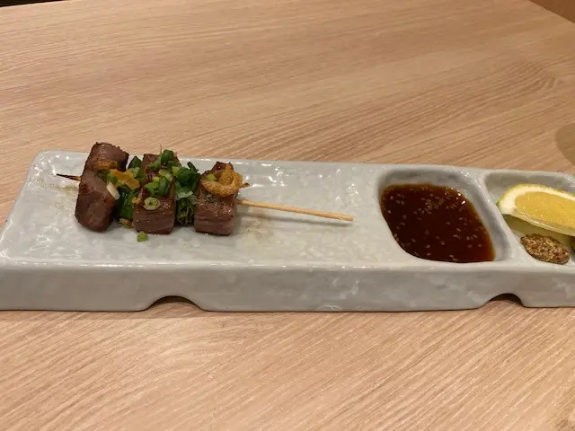 上星期六晚,和朋友一行三人到剛由灣仔搬到觀塘既水木日本料理食晚飯。搬舖前已經經常幫襯水木,知道佢地4月下旬係觀塘新開張後,就約埋朋友一齊去新舖食晚飯,搬店後雖然面積比之前細左,但都坐得舒適,位置亦好方便又易搵.當晚我們都ORDER左佢地多款菜式,包括新款式海鰻魚干、炸蝦、辣吞拿魚卷、北海道華蓮蠔、七款刺身拼盤、燒喜知次、燒銀杏、宮崎黑毛豬香腸等等,全部都係我至愛,食物更加保持一貫水準!首先,附送既餐前小食-海鰻魚干真係又幾特別,第一次食,香脆可口,送酒最好,炸蝦又炸得酥脆可口,之前舊舖時係我必點既一款菜式。辣吞拿魚卷則有著特殊的辣度,正!今次都試左日本華漣蠔,味道鮮美,口感嫩滑又新鮮。每次去到都一定會叫刺身拼盤,今次就叫左七款,牡丹蝦赤貝更係我既至愛, 燒喜知次魚(KINKI)的燒烤技巧恰到好處,魚肉鮮甜多汁,魚油滿瀉,燒銀杏用來送酒簡直一流。最後每人送上一杯雪糕,大滿足既一餐!下次要再ENCORE!…查看更多