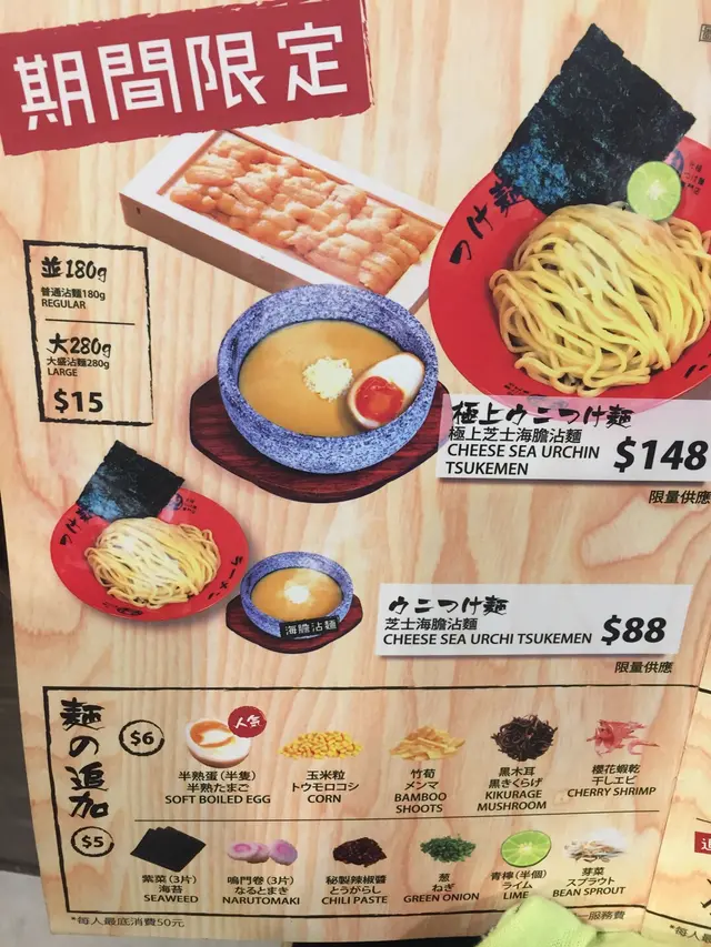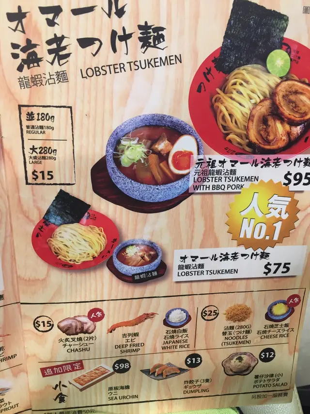 蕃茄濃湯寶 元祖沾麵專門店 2017-03-27成日經過厚福街有陣時都見好多人今日見唔使排隊就入去試吓沾面啦點知⋯⋯⋯⋯我見佢個龍蝦麵咁勁講都係必食就試吓啦點知黎到成個蕃茄濃湯寶得個咸字嗰個石窩轉個頭就已經凍左同埋啲湯都唔夠撈成個面咁就要加湯加完之後完全冇料到反而我朋友叫咗魚介湯底自己覺得比較好因為真係有濃濃鰹魚味本人不太好拉麵係香港都唔係食咗好多間但比較覺得深水埗嗰間好味啲雖然鋪仔細細但睇得出所有野都好用心唔知呢間有少少集團色經營總括來講如果未試過都可以試吓架但唔會專登再去…查看更多+ 3以上食记乃用户个人意见 , 并不代表OpenRice之观点。赞好分享蕃茄濃湯寶 元祖沾麵專門店 https://s.openrice.com/QrLT0tWWg00检举 张贴 评分3味道3环境3服务3卫生3抵食用餐途径堂食人均消费$100