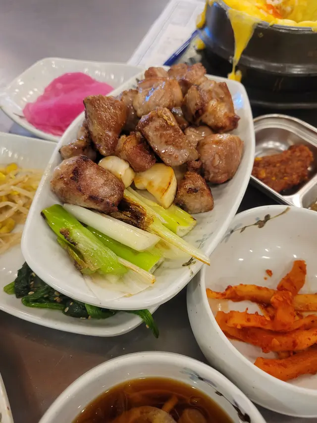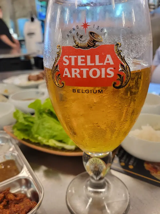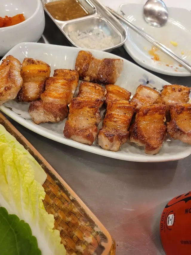 今晚在一家韓式燒烤店用餐,體驗很不錯。這裡的環境熱鬧,但不會過於吵雜。我們點了基本的**三層肉**。服務人員會幫忙烤至兩面金黃,口感香脆,肥瘦比例剛好。用生菜夾著肉和泡菜一起吃,味道很協調,是令人滿足的搭配。旁邊附贈的**雞蛋陶鍋**很受歡迎。蛋蒸得十分滑嫩,帶有淡淡的醬油香氣,在吃肉的過程中,用來轉換口味很合適。另外,這裡的**生啤酒**確實值得一試。冰涼順口,氣泡感足,搭配油膩的燒肉非常適合,讓整餐吃起來更清爽。整體而言,是品項簡單但品質可靠的一餐,適合朋友小聚,輕鬆地吃肉喝酒。…查看更多