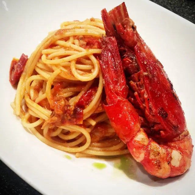 西班牙大紅蝦意大利粉,蝦肉又厚又彈牙,伴入XO醬和00意大利粉,啖啖都充滿煙煙韌韌。