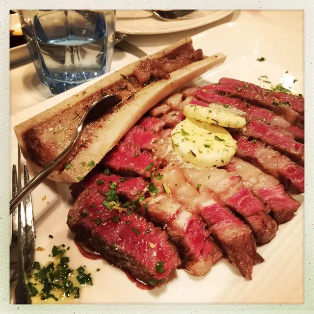 登登登登終於來到主菜,是餐廳的Signature Dish,肉眼牛扒配牛骨髓,賣相非常吸引,牛扒肉質鮮嫩,充滿肉汁,外層燒得帶點香,如再加上牛骨髓和蒜蓉牛油同吃,牛肉味更覺濃郁,口感非常好。