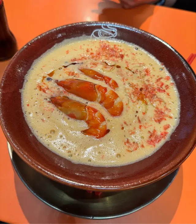 🦐🦐🦐雖然已經好出名但因爲太好食都好想出post🥹🥹喺youtube睇完老闆嘅訪問就更加respect ,堅持真材實料💯💯✨✨平日6點前去到唔使排 食完就排晒長龍了….餐牌只有一種選擇: 醬油蝦濃湯麵🍜 $118嚟到好有儀式感地淋上一圈嘅蝦油🦐即刻畢咗啖湯嚟試,熱辣辣,好濃郁綿滑!!! 🫧原來個湯底係用炒完嘅蝦殼,再加蝦肉絞碎熬製而成,超級真材實料!🌟而老闆亦都好堅持要用新鮮嘅食材💯上面三隻蝦好細心地已經剝咗殼🦐而且有用特製醬油去醃過〜有拉麵同刀削麵揀,拉麵比較掛湯,而刀削麵就有口感啲,各有各好另外叫咗生蠔同埋鮑魚🦪 ($38 each)生蠔好飽滿,鮑魚仲更加驚艷!彈牙好大粒好有口感🫶🏻特製醬油入面有辣椒🌶️、玫瑰露酒,但係都唔會過多,啱啱好吊到味😋個湯差唔多飲晒成碗,但係返到去都冇口渴🥶唯一嘅缺點就係都幾逼下,同左右隔離都超級近😢…查看更多