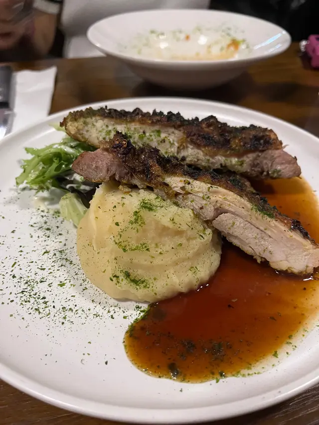同朋友仔食生日飯,無限時可以坐到十點👍🏻Set dinner 餐湯+主食+甜品只係$138,上環黎講性價比高🥰煙三文魚牛油果沙律🥗 +$35估唔到裏面有三文魚子,配上柚子醋,酸甜開胃❤️卡津孜然雞扒🐓孜然味重,雞扒皮香脆嫩滑,伴碟薯蓉都唔錯泰式冬蔭大蝦意粉🦐🍝大蝦有四隻,偏辣,有種特別嘅泰式味道,同平時冬陰功忌廉意粉唔同,幾有新意👍🏻海膽醬蟹肉牛油果意粉🍝+$25蟹肉份量都幾多,朋友話少少濃味,我就覺得接受到😌慢烤挪威三文魚柳魚皮烤到脆卜卜,魚肉嫩滑,美中不足係有dd腥味芝士蛋糕🍰香滑好食👍🏻蘋果撻 +$20  可以翻熱,朋友話唔錯朱古力榛子碎餅 +$20整體太甜,朱古力味唔夠濃,可以跳過