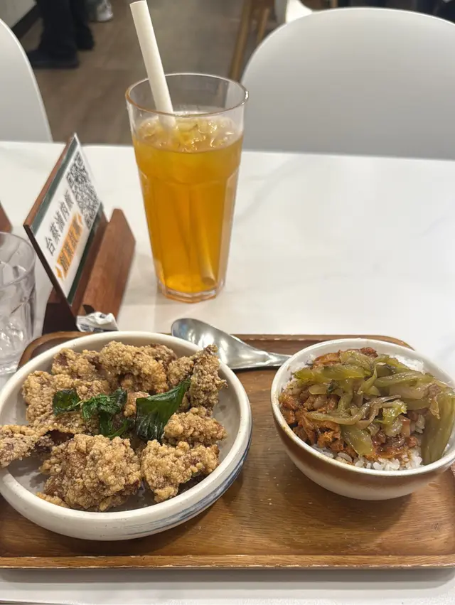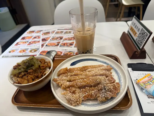 QR code自助落單,唔識嘅話服務員都會幫你落單。屬於快餐嘅感覺。餐廳地方寬闊,整體感覺都係乾淨整齊嘅,服務員態度正面,不過不失,亦都唔會食完就趕你走。鹽酥雞滷肉飯,炸得夠鬆脆,應該係即叫即炸嘅,但完全冇味道,滷肉飯味道還可以。飲品唔記得係乜嘢水果茶,冇茶味冇水果味,唔好飲👎🏻炸豬扒滷肉飯,都係炸得夠鬆脆嘅,但係又係冇味道嘅,其實加返啲椒鹽粉喺上面都已經夠晒味啦!珍珠奶茶,又係冇茶味,珍珠冇甜味,唔好飲👎🏻…查看更多