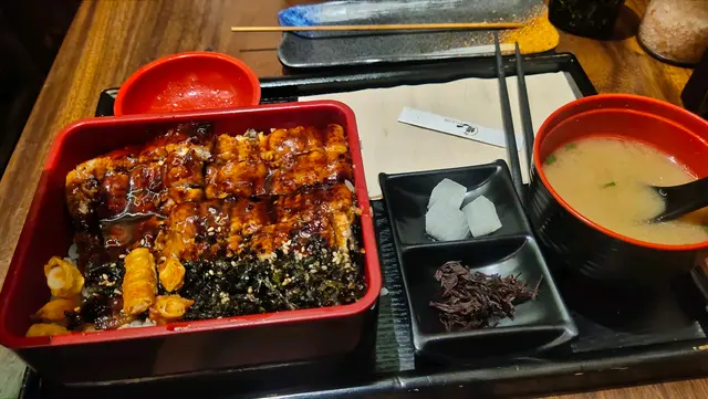 大愛鰻魚,終於一試。蒲燒鰻魚飯(大)$128湯同前菜一般野,唔好抱期望。鰻魚唔錯,骨去得非常仔細,配菜少少脆骨都幾香,呢個價錢份量方面冇投訴。口味偏淡汁偏少,如果要鰻魚汁,枱面係有供應嘅,不過同飯本身同魚燒過嘅汁係會有少少唔同嘅。串燒點了牛舌芯,白鰻,雞頸肉,醬麻雞。牛舌芯同雞頸肉冇乜特别,白鰻唔錯,醬麻雞嘅醬似海鮮醬,留意返呢款係有骨嘅。整體炭香味不足。雖然主打鰻魚飯,但餐牌有嘅,客人亦期望會好食,串燒算係唔太岀色,店家有燒鰻魚骨已係驚喜,但今次冇食,如果有埋鰻魚肝串就算係幾完整嘅鰻魚專賣店。全單$259,其實算係幾抵食!!!最後要大推炸鰻魚!!!!呢個無論味道,價錢都係值得一食再食!皮脆,肉嫩多汁,有四件,部位亦有腩位。非常好食!!…查看更多