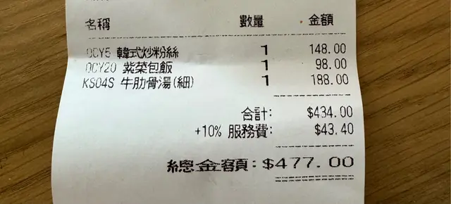 收得咁嘅價錢連一塊完整嘅牛肋骨都冇,會唔會有少少過分?之後係呢個炒粉絲,一上嚟見到個份量呆咗,成碗炒粉絲嘅份量真係勁少,而且啲粉絲係腍bet bet仲要勁鹹,$148咁細碟嘅粉絲真係好唔抵。至於個韓式飯卷,價錢就正常,但係一啲都唔好味。一路同朋友傾偈一路夾起舊飯卷,未擺到入口個飯卷已經散咗跌晒落隻碗度。。。總結而言,大家千祈唔好因為見到有成千五個好評而覺得呢一間係一間好正嘅韓國餐廳,試過就知係一個大伏!絕對冇下次同唔會推介俾身邊朋友!其實貴唔貴都唔係一個問題,重點係質量要配得上價錢,但呢間好明顯就係價錢同食物質素份量不符。…查看更多