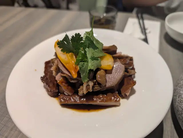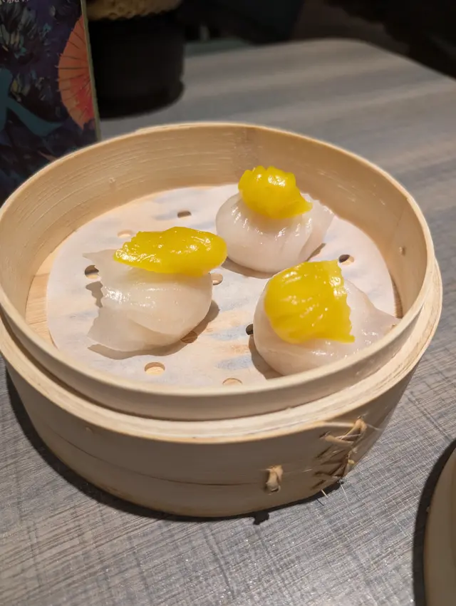 同屋企人拜完山見佢周不時要排隊諗住今次唔使排就去試吓啦佢地點心做緊半價都幾抵食呀叫左個滷水拼盤佢有墨魚,鵝肉,仲有鴨舌同鵝掌翼底下仲有豆腐墊底賣相同食物都比預期好食第一個點心係小小梨子佢個口感似咸水角但入面個餡係黑椒牛肉牛肉好鮮,黑椒唔會搶走牛肉個鮮味外層個皮好煙韌食落唔油膩第二個係黃金水晶粿佢其實似蒸餃多過粿個餡入面係炒蛋+少量韭菜同蝦肉食落都幾淡味之後叫左個抱抱蝦餃佢係本身嘅蝦餃再上面有隻細蝦餃仔無論係細還是正常嘅蝦餃都係好食佢唔同傳統蝦餃咁入面有筍但本身個蝦肉都好彈牙黑松露野菌餃本身個黑松露醬好濃算係最濃味嘅餃黑蒜蝦燒賣好濃烈嘅黑蒜味但個肉質說不出怪怪地新登記會員可以免費換點心一份或者鴨屎香檸檬茶飲落唔甜之後再叫多個荔枝蝦球入面個餡係芝士同蝦粒咬落去有流心嘅口感沙茶醬牛肉蟹皇麵首先比蟹皇麵誤導咗以為有蟹黃😂原來佢只係個款係叫蟹黃麵但個沙嗲比預期更出色牛肉都大塊同新鮮…查看更多