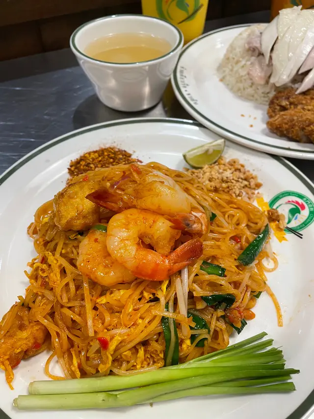 🔸鳳尾蝦泰式金邊粉($75)新鮮熱辣炒起非常有鑊氣金邊粉酸辣惹味辣勁十足鳳尾蝦大大隻好爽口🔸水門雙拼雞飯($56)泰式無骨海南雞配炸雞肉量十足又好味海南雞望落去唔算好吸引但係入口好滑嫩雞皮滑彈油飯熱辣辣香而唔油膩附送嘅雞湯有胡椒辣味好高質呀!🔸泰式腩仔($52)外層香脆肥瘦均勻入口好香油脂味一件接一件好食到停唔到口呀!超正🔸泰式奶茶($22)泰式奶茶獨有嘅橘紅色茶底味道獨特濃郁香甜順滑🔸芒果冰($26)芒果味濃郁酸甜啖啖透心涼非常消暑解渴…查看更多