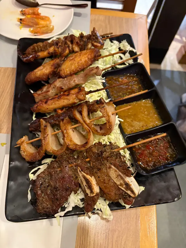 同男朋友係the one睇戲之前想搵間餐廳食飯經過見到呢間泰式野食就入黎試下😋呢間餐廳嘅環境都幾舒服 位置都闊落 同埋都幾有氣氛 好適合拍拖同埋各種嘅gathering我地嗌咗一個招牌串燒拼$188、原隻菠蘿焗飯$118同埋香芒糯米飯$68我哋係食咗串燒同埋焗飯先,香芒糯米飯要後上,發現都要需要好長嘅時間先可以上到,由於我哋嗰陣時趕時間所以轉咗外賣都等咗差唔多25分鐘,所以建議大家如果想嗌呢一個香芒糯米飯,上最後一道餸嘅時候就可以嗌定!…查看更多