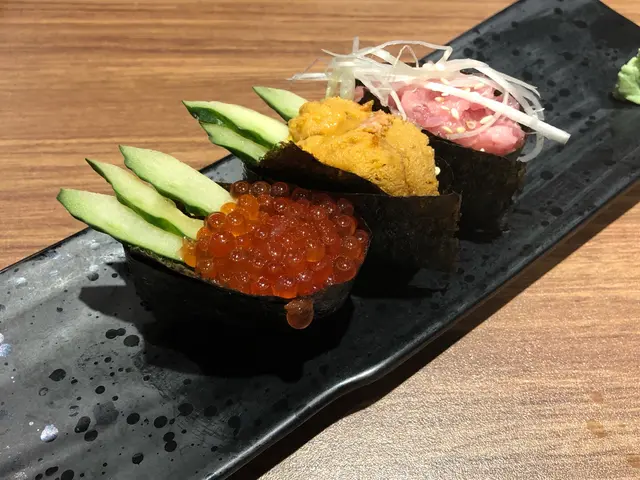 本身對這區認識不多,之前來的時候只知道有地鐵站上面的商場。這次由住在附近的朋友帶路,才知道地鐵站不遠處有另一個「覓食點」。餐廳位置不算很顯眼,跟著朋友走了幾級樓梯,左轉右轉才到達,要是不熟悉這一帶的可能要找一下。(不過離開的時候才發現其實沿途都有餐廳的廣告,細心一點其實不難找的)↑朋友喜歡吃魚頭,雖然我不懂吃,但也被它剛燒好的香氣吸引。看著她吃得津津有味,應該不錯!↑白身三品盛的魚生很新鮮,有油甘魚、劍魚腩和左右魚,忍不住叫了2份😛↑還有青森三品盛,有海膽、三文魚籽和大蔥吞拿魚蓉。這裡的壽司的飯份量比較少,個人來說剛剛好!(最喜歡刺身多過飯的感覺🙈)↑這裡的燒物和炸物也不錯,特別是大蝦雜錦天婦羅,炸漿夠薄夠脆,份量十足,抵食!↑還點了牛舌和燒茄子總的來說值得一試!…查看更多