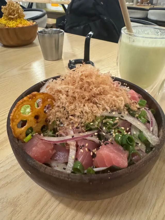 喺公司附近同同事搵到一間日式餐廳,點咗一個自選6款壽司丼同一個沖繩便當,適合快餐式嘅工作日午餐。自選6款壽司丼($158) 呢個自選壽司丼可以自由配搭6款刺身,選擇有彈性,點咗油甘魚、三文魚、三文魚腩、赤身、珍寶海蝦同松葉蟹膏,仲送一碗三文魚味增湯。 魚生OK,松葉蟹膏味道濃郁,略為腥但配飯食好match,增添豪華感。 送嘅三文魚味增湯暖胃又鮮甜,三文魚碎同味增湯底好夾,簡單但有誠意。$158嘅價錢喺市區來講算正常,唔算特別平,但份量對得住價錢。沖繩便當 沖繩便當内容豐富,包含吉列千層芝士豬扒、金菇肥牛卷、咖喱飯同一個刺身拼盤(三文魚、帶子、甜蝦)z 吉列千層芝士豬扒外層炸得金黃酥脆,應該係五花腩肉包埋芝士,小油膩。 金菇肥牛卷正常發揮。 咖喱飯,雖然唔係主角,但味道穩陣。 刺身拼盤:三文魚,甜蝦和帶子。呢間日式餐廳選擇多樣,適合同同事喺午餐時間chill一chill。…查看更多