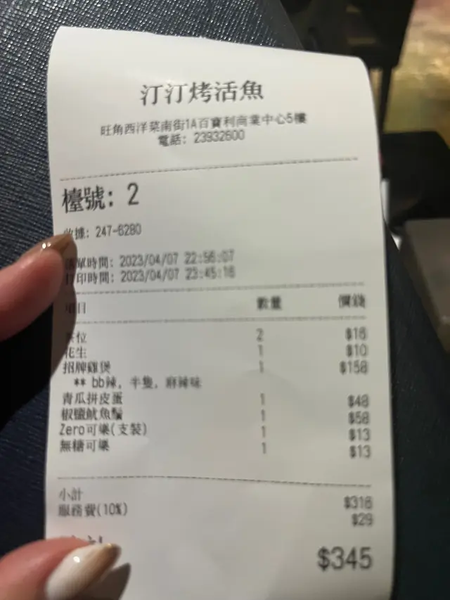 服務OK,所以再次光顧。但係冇諗過,星期三嘅晚上都要系咁催趕嘅狀態下dinner。我哋8:15落單,上菜應該等咗5-10分鐘左右齊。話咁快 15-20鐘後職員同我哋講”你哋得返10幾分鐘 要交枱”。果陣我即刻望吓個時間,唔通開心嘅時間真係過得咁快?唔係咼8:50咼?我估係可能我哋已經停咗手,但係好開心咁傾緊偈,所以職員催?