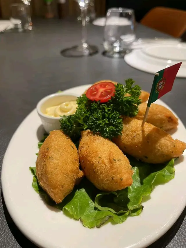 前菜上場是金黃酥脆的炸馬介休球 🧀 外層香脆可口,內層是完美比例的馬介休魚肉泥,鹹香適中不會過重!蘸上旁邊的蒜蓉蛋黃醬,濃郁得剛剛好,讓整個前菜昇華到另一個層次!😋主菜是一鍋誘人的葡式海鮮飯 🦐 湯汁呈現誘人的橙紅色,充滿著濃郁的海鮮香氣!新鮮蝦子、青口、蜆肉等海鮮料全部鮮甜無比,肉質彈牙,而且份量豐富,完全能品嚐到大海的鮮味。湯汁經過海鮮的精華提煉,香濃可口卻不會太重,配上軟糯的米飯,每一啖都是滿滿的幸福感!🤤#澳門美食 #葡國菜 #美食推介 #馬介休球 #葡式海鮮飯…查看更多