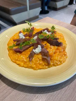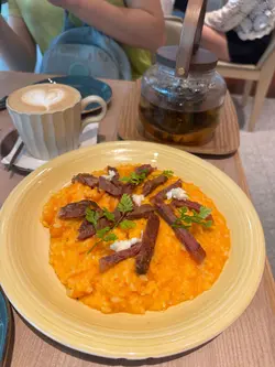 經過呢間cafe就pause it。黑松露芝士薯條呢個薯條好大份,超級多,加咗好多芝士及黑松露在表面,非常之美味。法式吐司吐司煎得很好軟,很香,無花果與吐司味道很夾,吐司加咗糖漿好味。蕃茄芝士意大利飯蕃茄味香,芝士味濃,飯粒煮得很像粥一樣美味。竹炭咖啡☕️呢個咖啡有個unicorn拉花,飲落有淡淡既竹炭味及奶味,咖啡味啖啖既。…查看更多