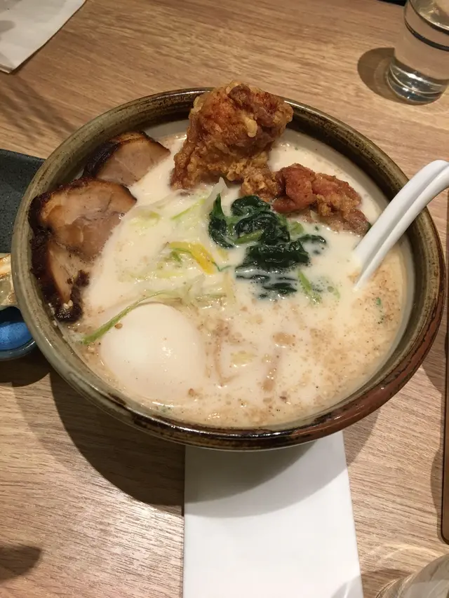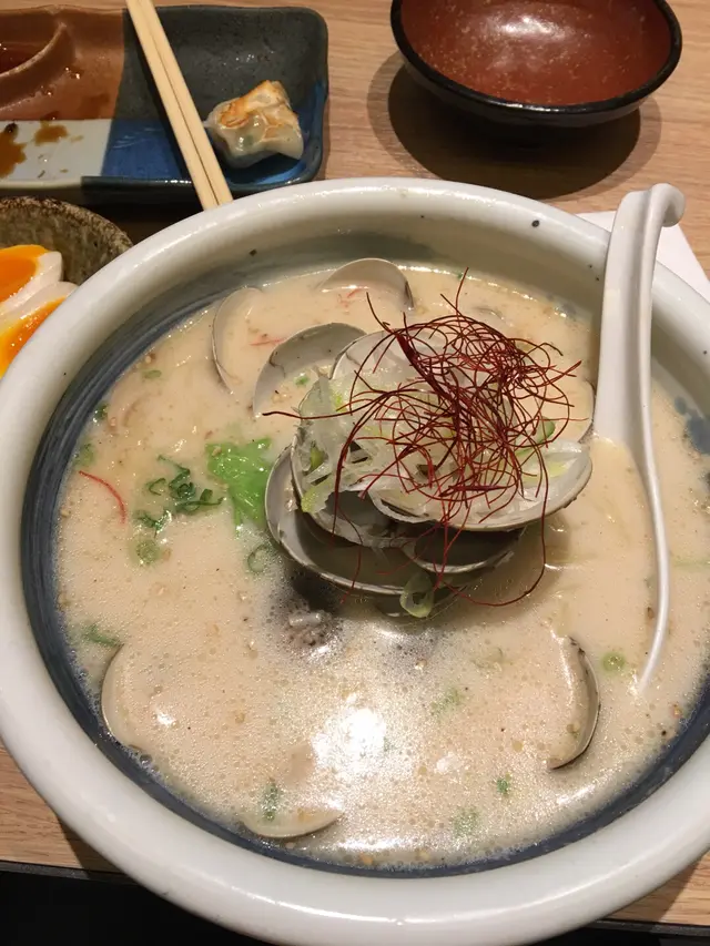 This new ramen restaurant has been opened for a few months. We haven't tried it yet as we saw so many people queue in line to try. Yesterday we noted the line wasn't too long so we thought of giving it a try. I do enjoy some good ramen. Considering this restaurant, there are a total of three ramen restaurants in the Tai Po Centre area. This restaurant is known for its salt based ramen soup. Two bowls of ramen were ordered, a limited special and one with assorted items. Limited special ramen: clam ramen, the soup wasn't too salty and you have the choice of adding extra toppings like black garlic paste, plum paste, or pomelo paste which is placed on the table. Assorted ramen, with fried chicken, char siu, and eggs. …查看更多