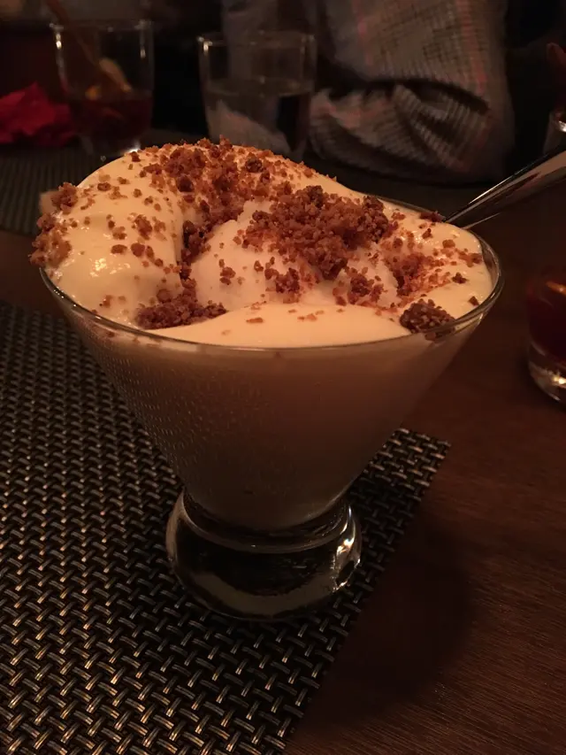 Catalan  cream  foam  with  cinnamon  crumble  be  lemon  sorbet