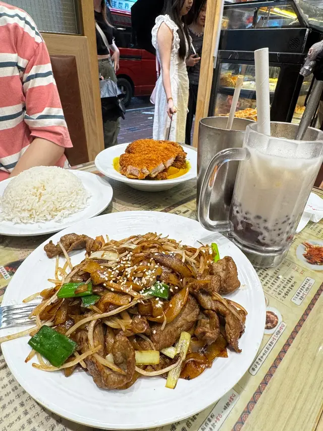 干炒牛河,一上台就闻到阵镬气,明显系即点即炒,镬气够晒香。豆芽放得好多,咬落爽脆多汁,中和咗河粉嘅油润。最惊喜系牛肉,块头够大,分量又足,啖啖都有肉香,真心推介!​咖喱吉利猪扒饭都系必食之选!猪扒炸得外脆内嫩,外皮卜卜脆,里面啲肉厚身又 juicy,咬落超满足。咖喱汁调得岩岩好,唔会过咸,香料味好浓郁,送饭一流。里面仲有炖到腍腍嘅土豆,吸晒咖喱汁!​菠萝油配红豆冰套餐都好有惊喜,热辣辣嘅菠萝包夹住冻冰冰嘅牛油,一啖咬落去,冰火交融,外皮酥脆带住牛油香,甜而不腻。不过男友话食一口就觉得滞,我就觉得啱啱好,可能每个人口味唔同啦。总体嚟讲,呢餐真系食得好开心!…Read More