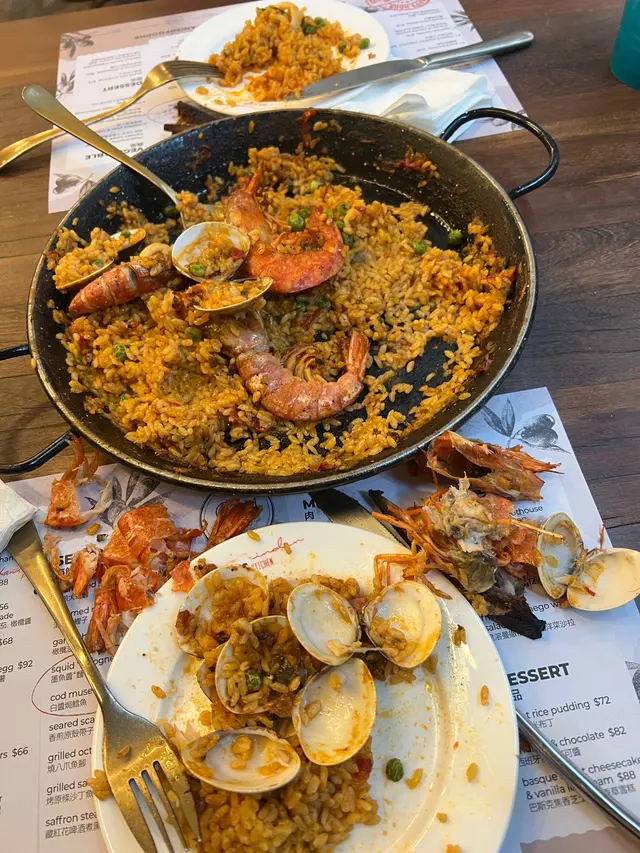 見佢無咩人,太肚餓walk in 即興入去,見隔離檯個西班牙炒飯幾大碟,又肚餓就叫左個西班牙炒飯同lunch set 豬肋骨個豬肋骨大概20分鐘內上菜,比預期中細份,得4條豬肋骨,加多堆無味薯蓉!係無味,鹽都無落?然後就再起碼等左超過45分鐘,先上個西班牙炒飯,都唔緊要,我以為我咁肚餓食咩都會好食,我可以話呢個係我一世人食過最難食嘅炒飯,都係完全無味!無落鹽!之後要佢比鹽我地落先叫正常少少,但試埋啲蝦同蜆,無錯,蝦份量係唔少5-6隻,但全部都霉!蜆都係無味!總之就係無味嘅海鮮炒海鮮炒飯?仲要收人$300
