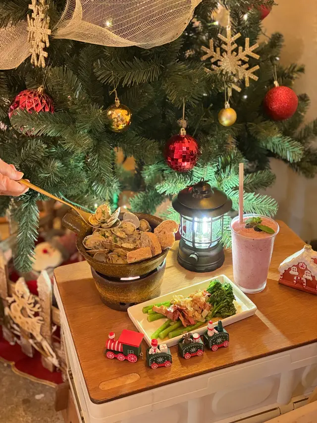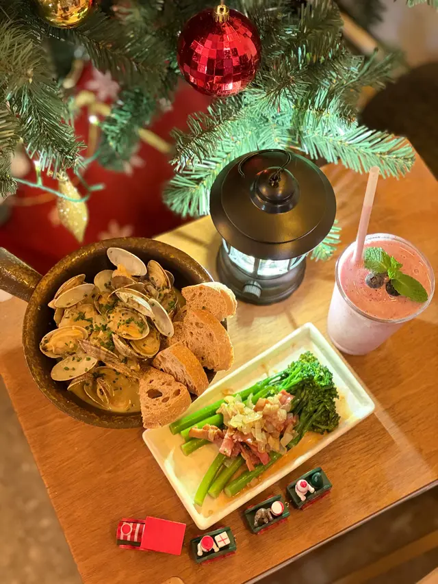 Aha CAFE & BISTRO是露營風文青café,庭院區域佈置吸引,一棵銀色飾品的聖誕樹矗立,營造濃厚的聖誕氣氛。露營摺疊椅倍感舒適,想坐下來細味咖啡。輕柔音樂,配合寧靜的環境,完全沉浸在閒暇之中,是放鬆心情的好去處。晚市二人套餐 $458蒜香白酒煮蜆配脆多士 +$10煮蜆以燭台座熱,挺身的蜆肉,入口鮮香多汁,浸泡在蒜香白酒汁,蒜香的芳香,搭配脆脆的多士,十分惹味。 炒西蘭花苗伴煙肉清脆的西蘭花苗,爽脆清新,配上煙燻的培根,鹹香滋味,打開味蕾。主食義式水煮比目魚配酸種麵包 +$88比目魚外表焦香,魚皮酥脆,肉質滑嫩,酸種麵包沾上滿滿魚油,入口帶嚼勁,令人食指大動。香煎鵝肝、慢煮鴨腿伴松露蘑菇意大飯 +$98鵝肝甘香微脆,內裡綿密,香氣濃郁。慢煮鴨腿肉質細膩,意大利飯煮至綿軟,每粒飯被松露蘑菇汁包著,配上黏稠芝士,美味吸引。甜品開心果巴斯克芝士蛋糕 +$10甜點可以免費加上祝福語,及送上即影即有一張,是慶祝生日之選。蛋糕口感綿密,滑嫩的芝士,加上開心果脆脆,甜而不膩,令人滿足。炙燒和牛Tataki伴日式檸檬醬油 $118和牛用火槍燒至表面焦香,肉質半熟嫰紅,保持著豐富的肉汁,散發出濃郁牛肉香。飲品鶴梅柚子酒清爽的柚子酒,帶清新的果香,人口酸甜有致,冰爽暢快。雜莓Smoothie $62稠密的奶昔,混合多種莓果,莓果香充滿口腔,還有粒粒果籽,清爽味覺。…查看更多