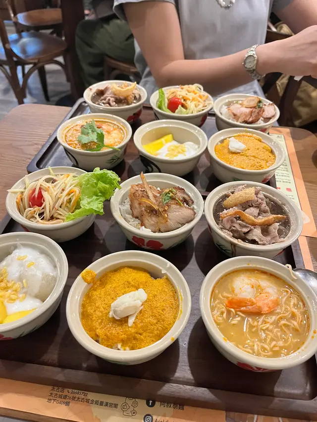 住喺大西北好耐都唔一次過嚟太古城,random搵咗一間啲圖片都幾靚嘅就入去試吓啦差唔多2:00可惜假日係冇下午茶嘅,見隔籬枱一個set有六個碗仔咁得意,我哋兩個人都叫咗兩set嚟試吓,其實你問我冇邊一碗係特別好食,尤其是嗰個蝦麵嗰隻麵基本上你去普通360都可以買到嘅泰國即食麵,嗰碗豬肉粉啲粉同湯嘅溫度係有差別嘅,純粹係食多種食物放埋一齊嗰種新鮮感,所有嘢飲要另外加錢,買單最少$120set,真心嗰句環境都OK啦,食物真係一般般性價比一啲都唔高,好評嘅地方就係佢冇吹交枱,不過食完嘅時候都差唔多3:00pm, 距離地鐵D 1出口2分鐘路程唔算好遠,可以作為喺商場之外嘅一啲其他選擇。btw 芒果糯米飯真係唔得芒果勁酸糯米飯成舊完全咬唔開。。…查看更多