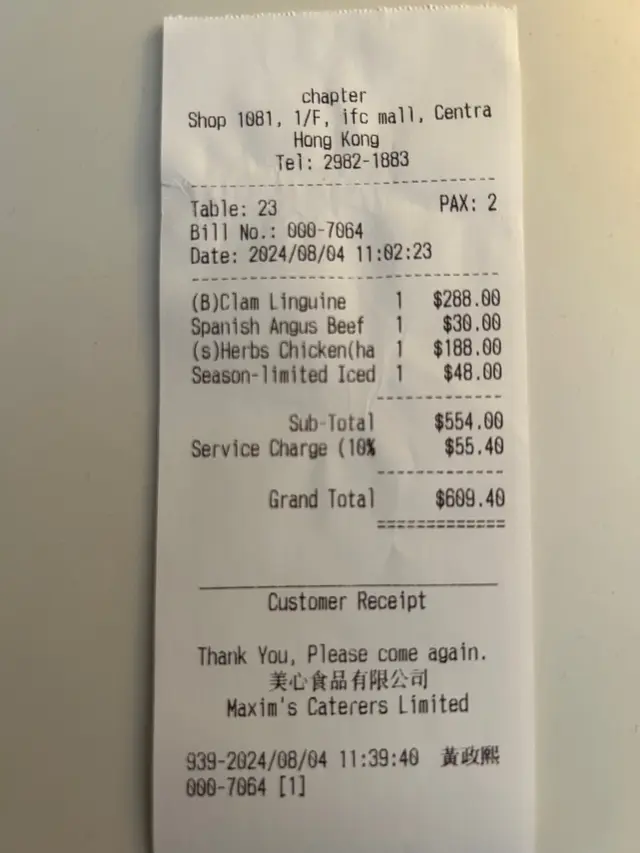 這間餐廳環境是十分不錯,生日曾經來吃過晚餐。明白呢個區分,價錢相對要提高,意思是基本上大部份食物,包括飲品都需要另外加錢,分開兩張Menu有輕食$188/ set 有brunch set $288.週日早上十一點入座,只有一枱客,我們點了一客brunch set及一客輕食(烤雞及自選兩款沙律)西裝男經理全程態度十分冷酷,頭盤我選了牛他他(+$30)及主菜蜆肉辣肉腸意粉。 他無端端跟我說我要的是牛漢堡,其實我從來未跟他說過,或查詢過這個口味。輕食方面只是查詢一下,他的語氣及態度顯示十分不耐煩。知道這是Simplylife餐廳的高級版,每一樣嘢都要收費,包括水,無問題的,但經理沒有詢問我們是否需要水,吃着麵包乾哽,唯有查詢junior的女侍應, 原來有tap water供應的,不過我還是點了一杯冰果茶。埋單我也不想再對住經理的面口,我通知小職員埋單,行經出口跟經理擦身而過,他呆呆的目光看着,也沒有最基本的thank you及笑容。不想看他的面口及這個服務態度,可以在入門口位買食物,旁邊提供空間食用。…查看更多