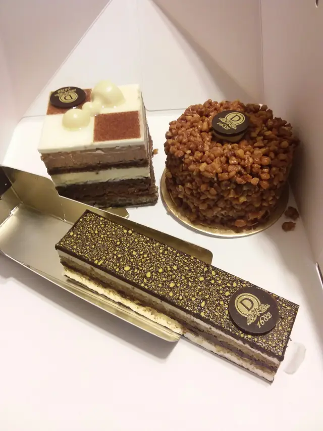 知道最新進場銅鑼灣,為黑松露opera而嚟嘅我,買左合共三件蛋糕,就噤睇價錢當然好有期望。由其是opera,每件更加多獨立盒盛載,格外顯得高貴,但最實際嘅當然係件蛋糕嘅質素。Opera - 不如期望中嘅黑松露濃郁,只係淡淡穩約食到,其質感較輕,沒有想像中果份驚喜!焦糖杏仁 - 被賣相吸引,可惜整件蛋糕又乾又硬,杏仁粒有點冧左,內藏果粒蛋白脆餅也不脆,完全食不到它要香滑感覺。棋盤蛋糕 - 店員話係黑,白朱古力慕絲,可惜完全無期望中嘅朱古力香味,只有甜味而帶點實,非常失望,呢個價錢,真係還有好多更加好嘅選擇,真係名過於實。…查看更多