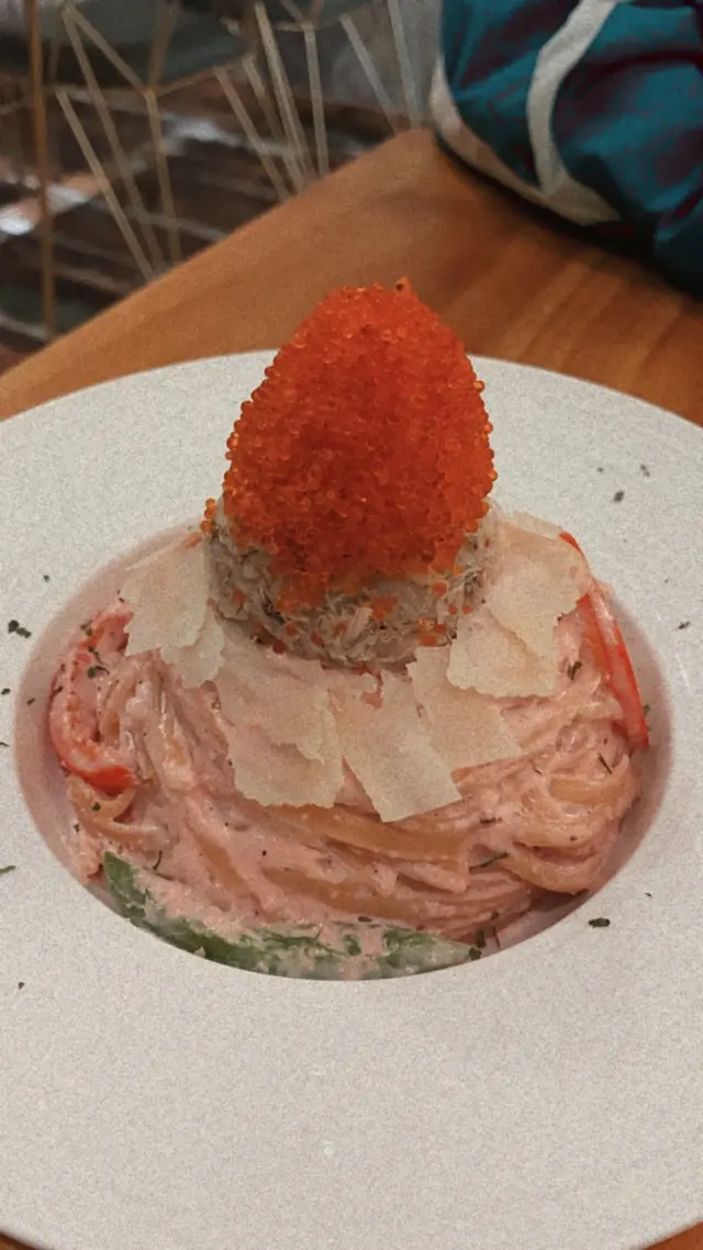 佢呢個明太子蟹肉意粉值得一讚😍超好味醬汁好夠 每啖都可以沾到汁好juicy😋意粉煮得岩岩好 吾會太淋身而蟹肉份量方面好大方🤣超大舊!蟹籽份量都超多 真系要讚下雖然望落好似好細份 實質食完超飽!個到既環境舒服 系樓上餐廳夠曬靜吾會太嘈 佈置偏草原feel呢到比較特別 提供蝶豆花檸檬茶以代水免費的當然大家都可以揀飲水!🤣🤣店員好有禮貌!好有笑容臨走仲會多謝你歡迎下次再光臨送你到門口90度鞠躬 真系加哂印象分💕…Read More