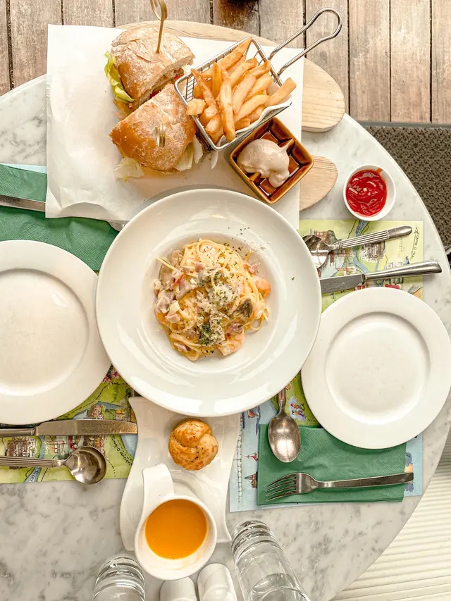 ◽️ 𝘈𝘱𝘱𝘦𝘵𝘪𝘻𝘦𝘳 南瓜湯配蔥包 (6.5/10)個蔥包覺得麻麻地🧐食落鹹鹹地 吾太勁既蔥香味覺得隻味怪怪地有啲香草味但朋友okay鍾意食😹真系每個人口味吾同個南瓜湯偏少甜 吾太沙香濃既南瓜味 湯系吾錯既~◽️ 𝘔𝘢𝘪𝘯 𝘤𝘰𝘶𝘳𝘴𝘦 大澳蝦醬豬扒包配薯條 (5/10)賣相其實okay既 食落真系一般首先講個包 好乾身兼少少硬仲系系厚厚地甘對比塊豬扒真系幾薄😂又系硬仲有啲生菜蕃茄青瓜加勁少量沙津醬食落口硬過我條命🥴旁邊有個醬 可以搽啲入去包夾住食個醬系蝦醬mix沙津醬 大約4 : 6比例沙津醬味重啲🤓Overall呢個包我系吾建議食既🤟🏻◽️ 𝘔𝘢𝘪𝘯 𝘤𝘰𝘶𝘳𝘴𝘦 鮮蝦煙肉芝士白汁意粉 (6.5/10)覺得個蝦幾爽口🦐之後仲有啲菇🧐個意粉既醬就好稠 比較粉狀芝士味吾太濃成個味道偏鹹煙肉就好鹹😹成個意粉食落系芝士粉甘麻麻地◽️ 環境及服務 (8/10)覺得冇原先expect甘靚d落地玻璃吾夠清同通透 而且要坐窗邊要book or同員工講專等個張枱🤣要食真系要好早去因為booking長期full嫁😕如果好彩個日天氣好view都應該okay既🤟🏻不過我見餐廳枱有蟻可能系漁村地方所以要注意下啦🔺…Read More