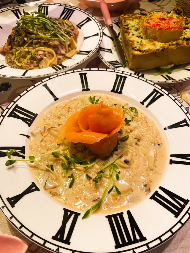📎 $128 飛魚子煙三文魚燴意大利飯 (8.5/10)煙三文魚扭左做一朵好靚嘅玫瑰花擺系面d飯粒好軟綿綿好香既野菌味 同飛魚子好夾偏水身 但汁系好入味 忌廉汁濃而不膩📎 $148 卡邦尼意大利粉 (7.5/10)呢個意粉係扁意粉 入邊有好多煙肉卡邦尼汁好creamy 每條意粉都沾到汁份量適中 而且有啲香草調味但煙肉個人覺得少鹹可能係產地問題🤣但系都吾錯📎 $58 黑松露芝士烤多士 (5/10)感覺系超級普通既麵包😹黑松露味好少麵包都幾soft似海綿但系就系冇乜味 芝工味得表面硬硬地既一層皮好淡味蒜蓉包應該會仲好食😕📎 飲品 (6/10)呢方面懶得詳述😹Chocolate 一般啦有乾花個杯朋友覺得ok然後我個杯水蜜桃草莓乳酸梳打系冇乜水果味都系多糖水味-💁🏻‍♀️環境及服務 (10/10)環境真系都幾正😌細細間吾會太多人可以有個寧靜既環境 欣賞下周圍打下卡周圍既裝飾好精緻 滿佈愛麗絲既擺設營造一個仙境感覺好舒適有啲遠離煩囂都市既感覺俾自己停一停 靜一靜仲有個吊籃系坐得😻地板牆身都系一流無得講睇得出店主好用心佈置✨愛麗絲迷一定要黎🤪…Read More
