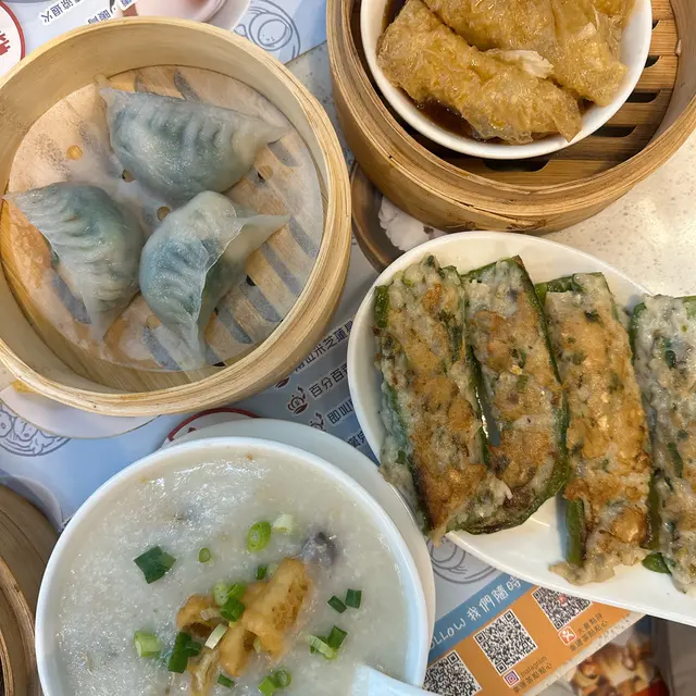 ✨佐敦廟街想食中式點心,「幸運茶點點心」是一個好選擇,這裏地點方便,點心即叫即蒸,全部上檯熱辣辣出晒煙。***** ***** ***** ***** *****同朋友揀選咗8道點心。燒賣-大大粒好味😋鮮蝦菜苗餃🥟-皮薄口感好陳村粉蒸排骨-啖啖肉滑嘟嘟鮑魚糯米雞🐔-材料有鮑魚超抵食鮑汁鮮竹卷竹🥓-味道豐富煎釀虎皮椒-煎得金黃色好靚皮蛋瘦肉粥🫕-皮蛋味夠香濃,粥底軟綿五香芋絲春卷🫔-脆卜卜無得彈茶位每位$7,點心有水準媲美大酒樓,地點方便,又唔使加一服務費,難怪人流不斷。…查看更多
