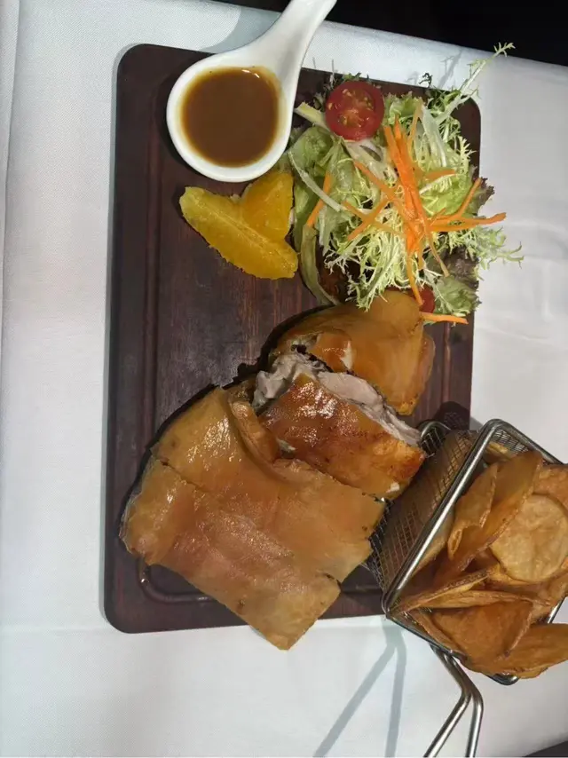 呢間餐廳真係一個低調但超有料既葡國菜餐廳!一入到去,環境好有葡式風情,木桌椅配暖色燈光,感覺好似去咗葡萄牙小餐館咁,超chill服務員好親切唔會黑口黑面,有問必答。1. 烤乳豬