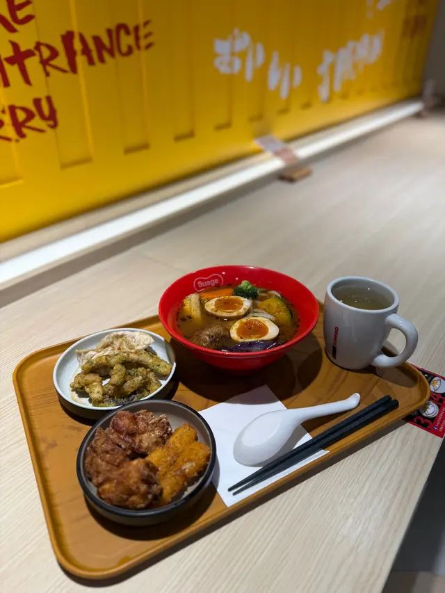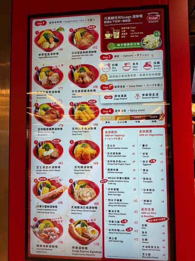 餐廳位於商場美食廣場,環境整潔舒適,雖然係food court設定,但座位寬敞,店員服務態度亦超親切💗▫️我今次揀咗特選湯咖喱同埋唐揚雞湯咖喱我揀咗原味湯底,微辣等級,配烏冬烏冬超級煙韌,同普通咖喱唔一樣嘅就係佢哋唔會好似佢咁樣樣將念念痴晒喺啲烏冬度👏🏻食落去個嘴唔會有任何嘢黐住,但係個烏冬又已經會吸晒啲咖喱味另外每碗烏冬都會配有蔬菜:薯仔、茄子、西蘭花、粟米、紅蘿蔔,健康又豐富,所以食落去非常健康同埋會更加飽肚~而特選咖哩湯就會再多一條司華力腸、一片叉燒同埋一個炸雞,所以份量係非常足😵另外佢哋亦都有好多小食提供可以俾你額外再加價錢都只係$9-$12,打咗都唔會好肉赤強烈推薦一定要追加蒜蓉包!點湯咖喱冇得頂!▫️份量方面,一碗特選湯咖喱好夠食,因為有司華力腸、叉燒、炸雞,兩個人share都夠飽,尤其加咗配菜小食後,飽腹感直接拉滿!就算係另一碗唐揚雞亦都好飽,因為裏面有好多蔬菜。整體嚟講呢個價錢包埋嘢飲,我覺得CP值超級高…Read More