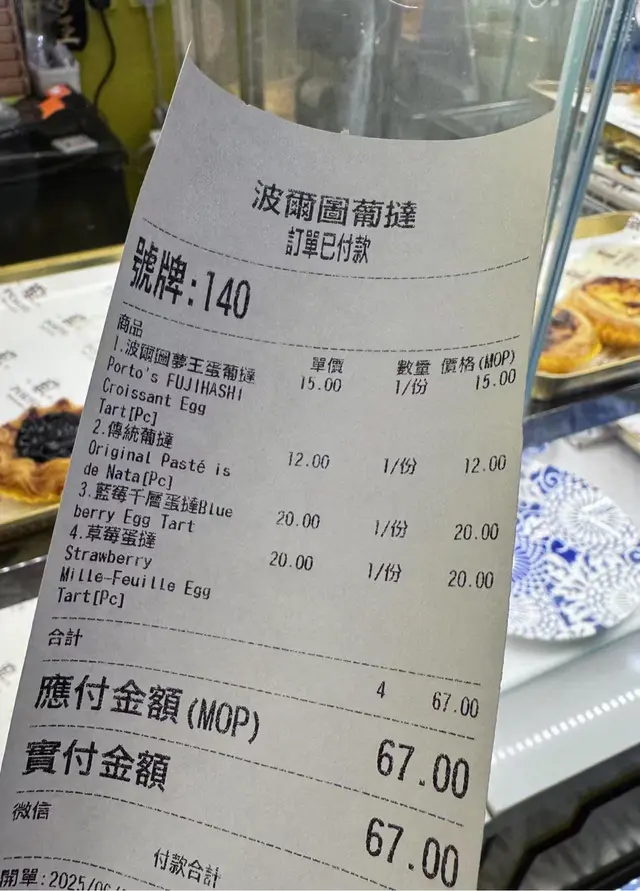 吃普通葡撻吃到悶啦今日經過呢間見到有好多唔同口味嘅酥皮蛋撻,所以就嚟試吓~網上見到呢間鋪係由葡萄牙主廚手工製作!所以一定好正宗而佢哋採用嘅係日本生食級夢王蛋食落去蛋更香甦濃郁,滑順細膩而佢哋仲使用法國頂級牛油令撻皮更酥脆、更香醇撻面微微焦糖化既奶黃餡散發著濃郁的蛋香。一咬落去酥皮瞬間碎裂 帶黎清脆既口感內餡甜度啱啱好帶有少少雲呢拿味,讓人回味無窮。同坊間一些過甜或過膩的葡撻相比,波爾圖的葡撻平衡得恰到好處,而佢哋嘅外賣盒亦都係大三巴嘅標誌,淨係買一個嚟影相都好靚最近佢哋仲做緊優惠買3個以上送冰箱貼!食完之餘仲有嘢帶返屋企真係超正…Read More